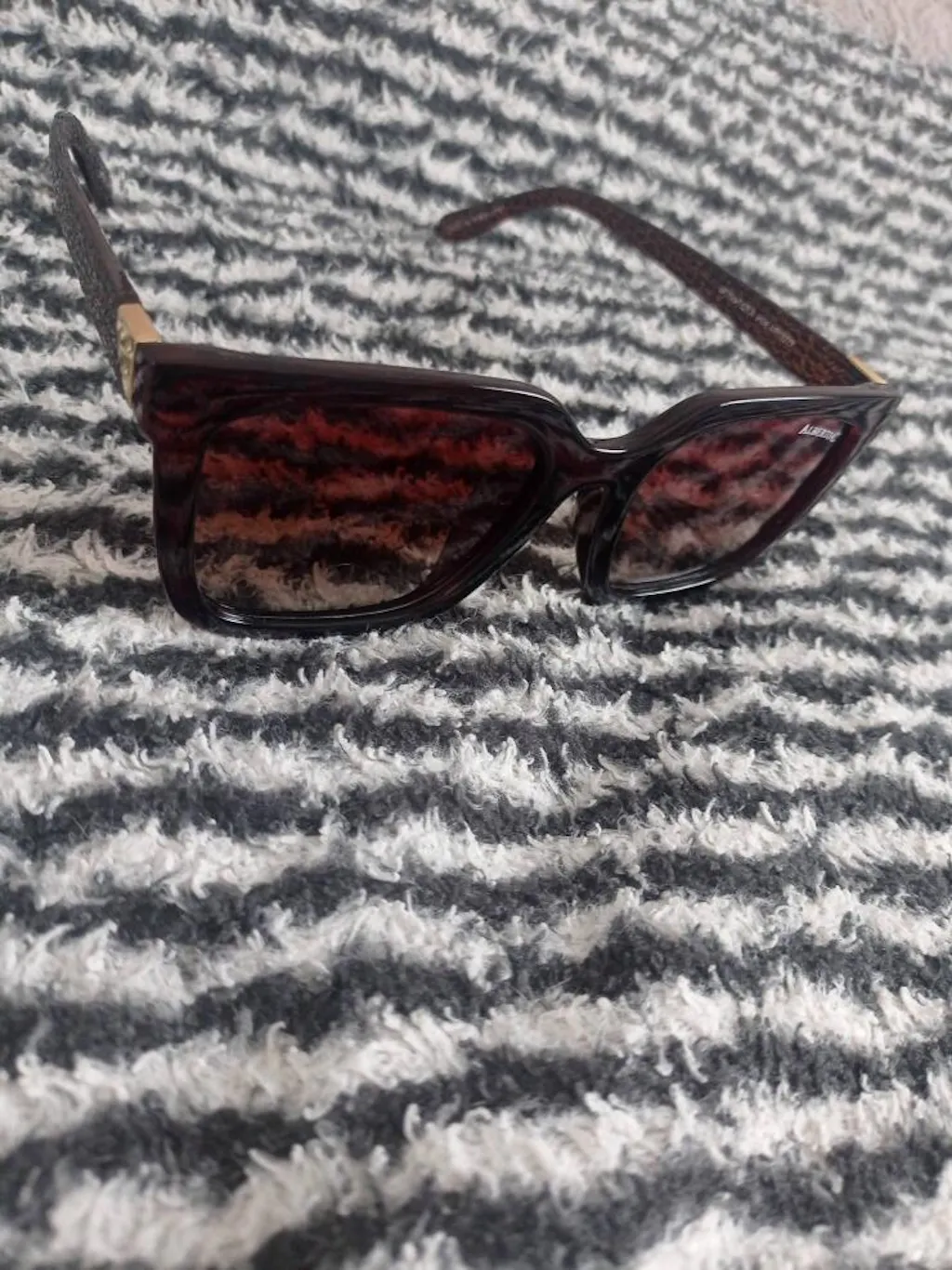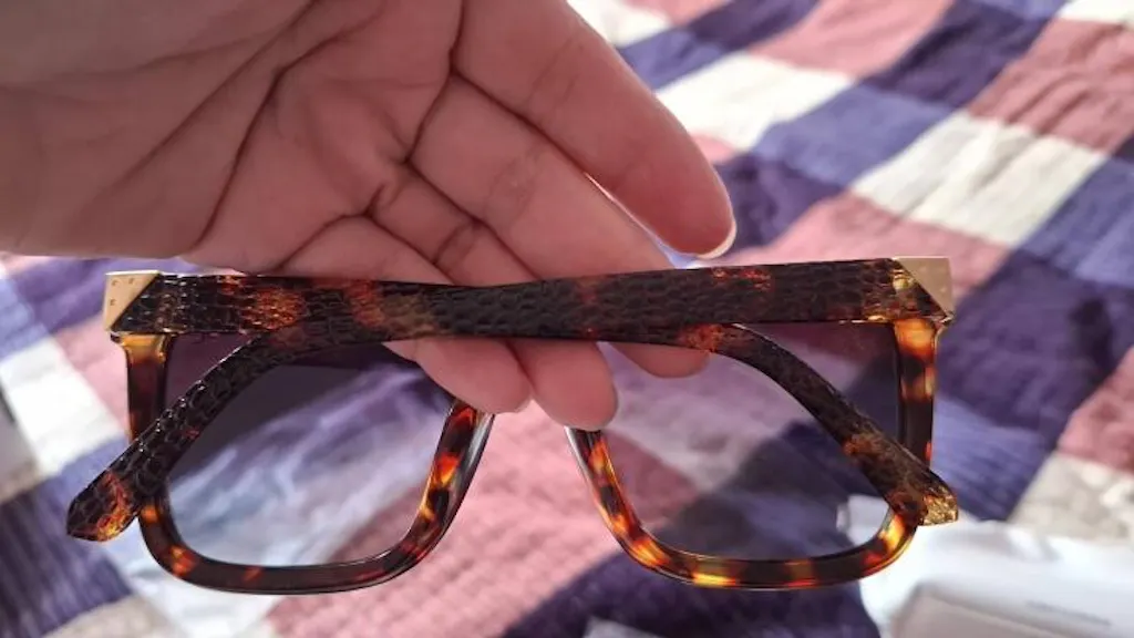 Yorqin Alberto Kasianodan maslahat: agar siz mukammal bo'lishni istasangiz, ko'krak oling; Ushbu ko'zoynak bilan shaxsiy his-tuyg'ularga va zavqlanishga e'tibor qarating. O'zingizni linzalarning soyasiga botiring. Ilon terisi ko'rinishida tekstura qilingan ibodatxonalarga teging. Kalıplanmış ramkani oqlangan qo'l bilan olib tashlash orqali dunyoga ko'zingizni oching.