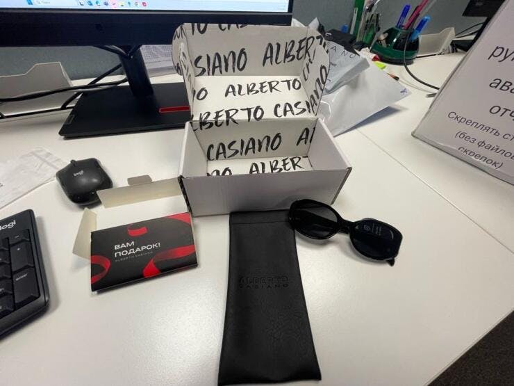 Очки просто огонь, качество материала крепкое, хорошо защищает от солнца. Также подарочки классные положили. Оформление коробки и очков. За эту стоимость очень стоящей!